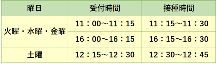 当院では下記の時間でインフルエンザワクチンの接種を行っています。