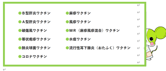 当院ではインフルエンザ以外にもワクチンの接種を行っています。