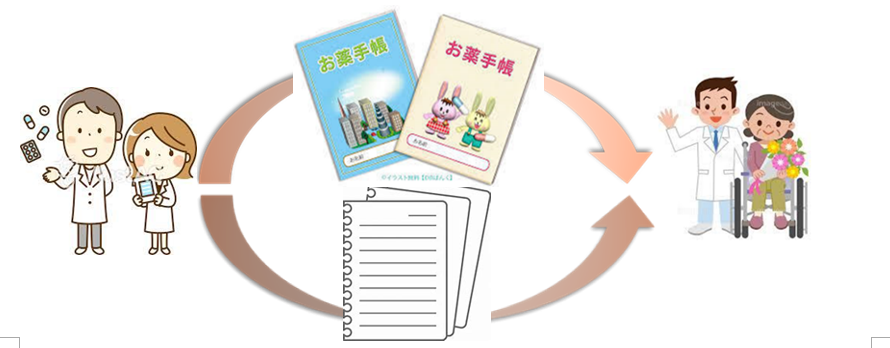 当院では現在保険薬局向けにお薬手帳を介した情報提供を2019年から行っています。そこには入院中の処方変更の意図と退院時処方の内容を病棟薬剤師が貼付して保険薬局へ見せて頂くように患者様に説明させて頂いています。